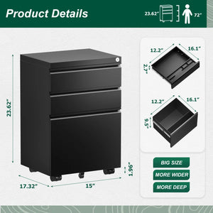 - SIZE: Include the casters 15.5" W x 17.8" D x 23.6" H ,This file cabinet fits under most desks, add security to your office
