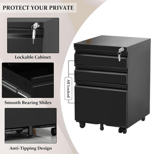 3-Drawer Mobile File Cabinets Rolling Metal Filing Cabinet for Legal & Letter File Anti-tilt Design with Lock Under Desk Office Drawers