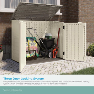 34 Cu Ft Capacity Horizontal Outdoor Storage Shed for Garbage Cans, Garden Accessories, Backyard, and Patio Use, Vanilla