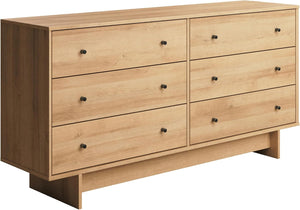 6-Drawer Dresser in Natural Oak, Dresser for Bedroom, Extra-Wide Chest of Drawers with Storage