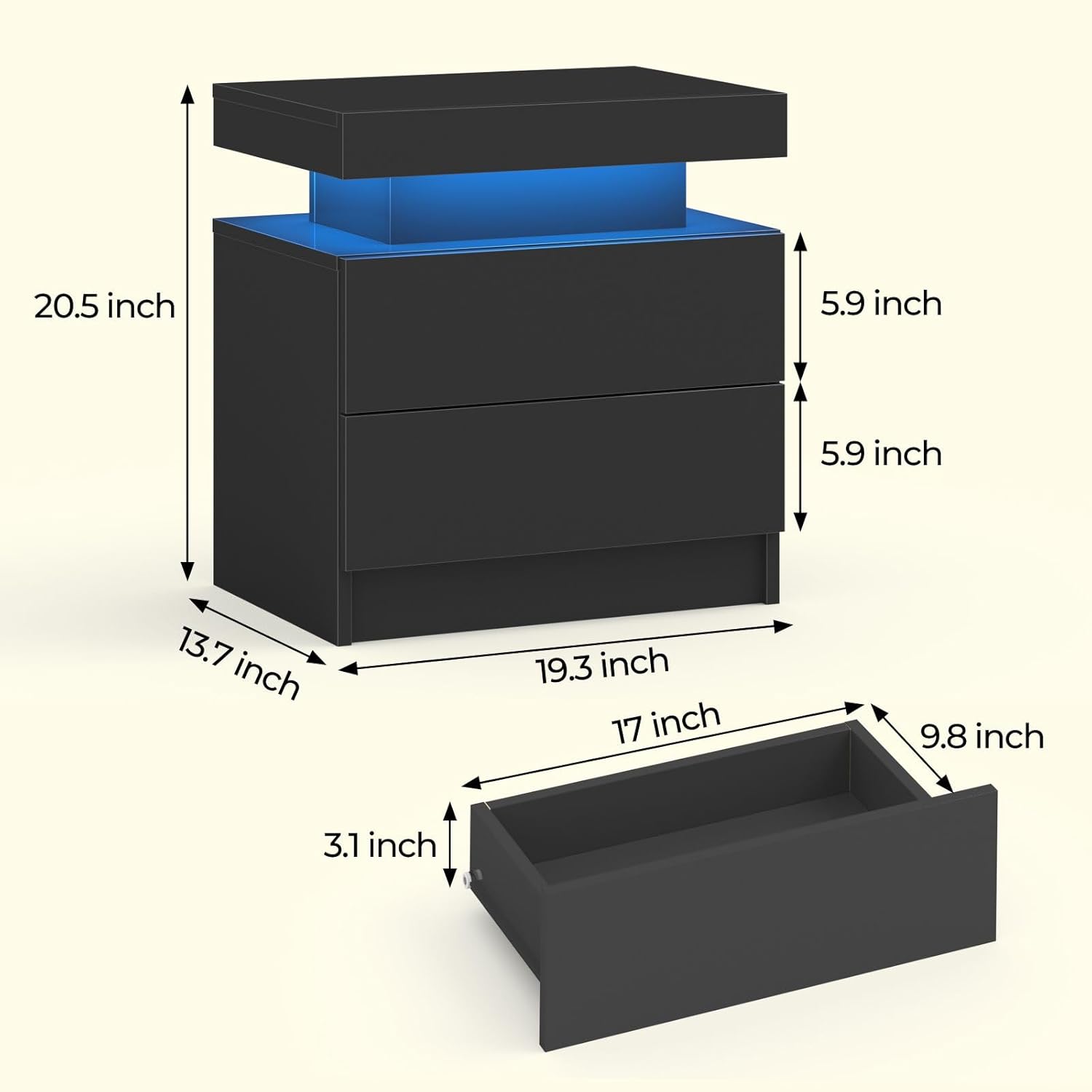 - 【Not just a nightstand】Elevate your room's ambiance with LED lights, offering an impressive array of options. Choose from a stunning selection of 20 static colors or 19 dynamic lighting modes to set the perfect mood.