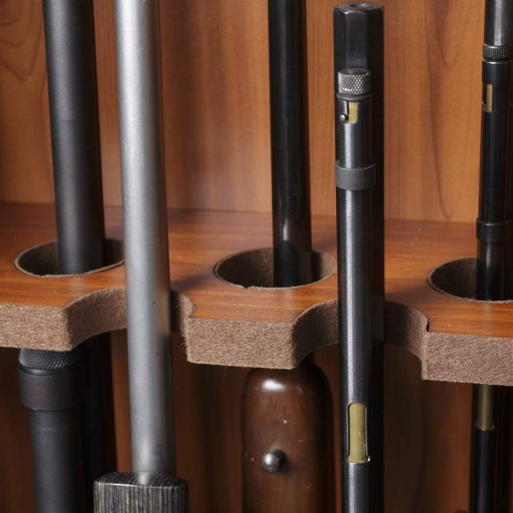 DISPLAY AREA - DISPLAYS MOST 52" RIFLES AND DOUBLE BARRELED SHOTGUNS - Displays most 52" rifles & double barreled shotguns, MEDIUM BROWN FINISH, WOOD AND VENEERS - wood and wood veneers offer structural stability