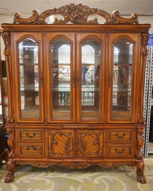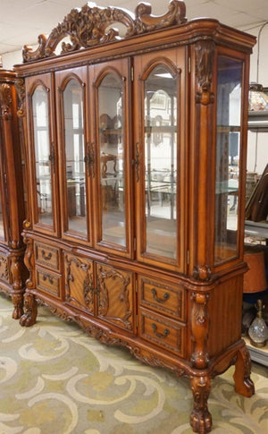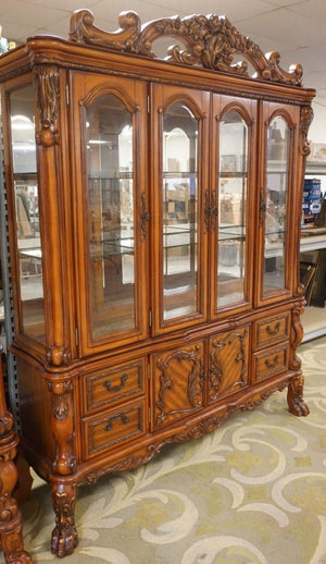 Dresden 4-Door Hutch and Buffet with 4 Drawers in Cherry Oak Display Cabinet