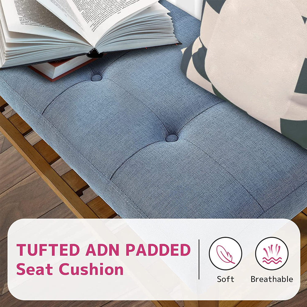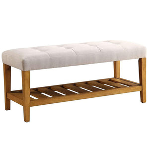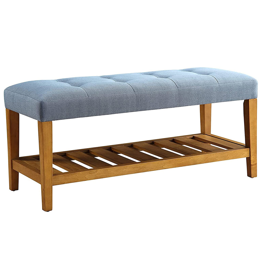 - [Style That Speaks] Featuring a classic linen tufted top contrasts well with the wooden styling of the base. Clean lines with stitched detailing work well with almost any look, tapered legs and trendy design, offering a chic atmosphere for our shoe benches