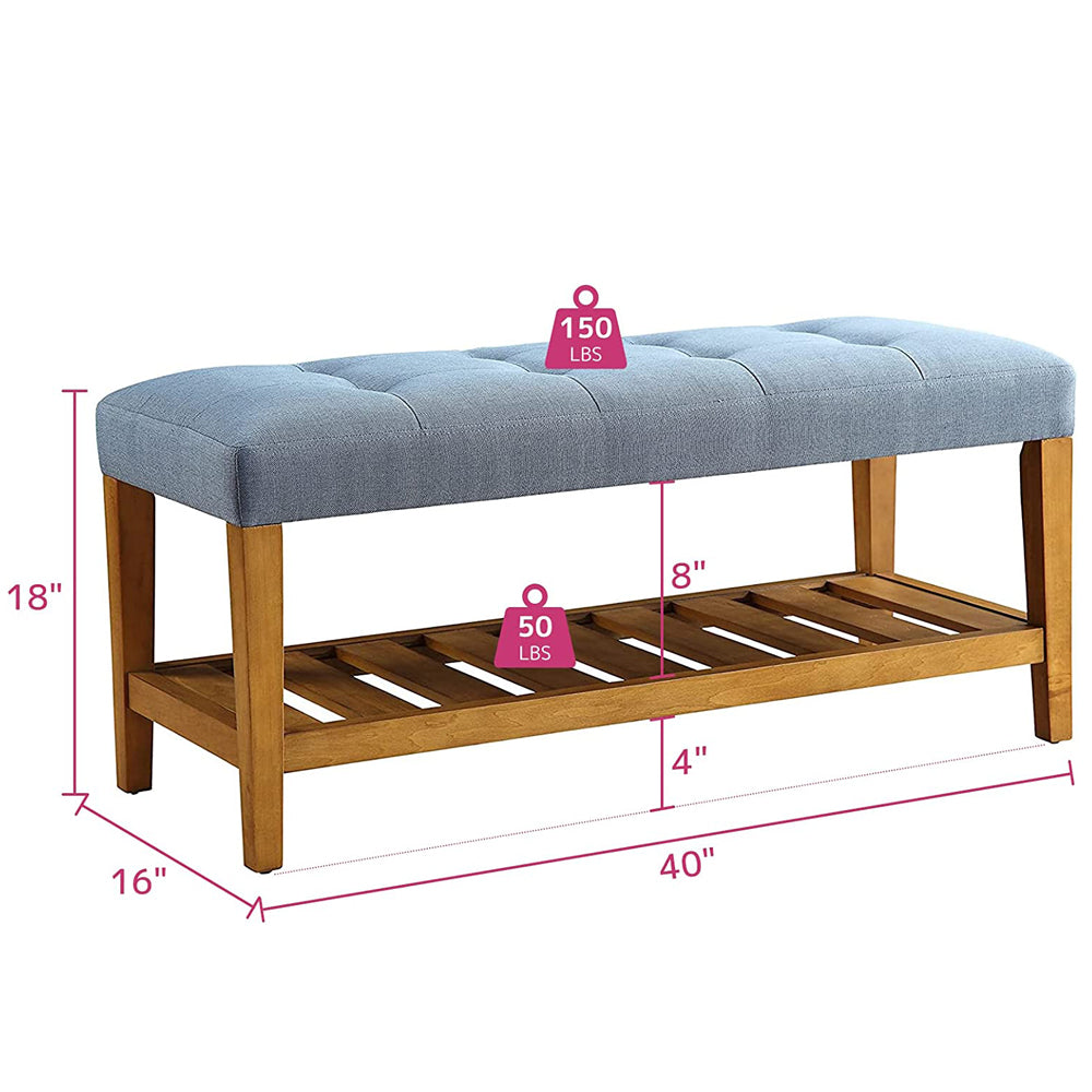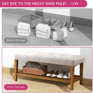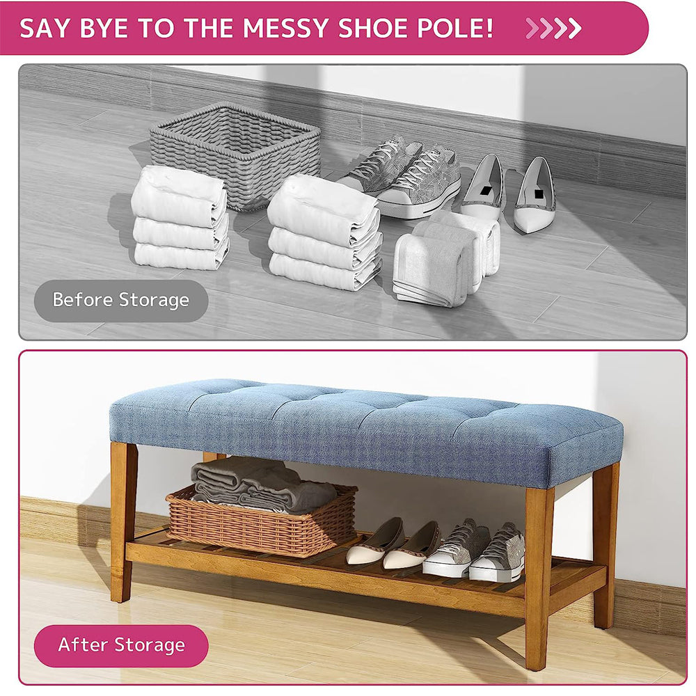 Entryway Shoe Bench Storage Upholstered Bench with Bottom Shelf for Hallway Living Room Bedroom