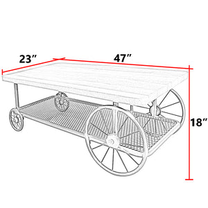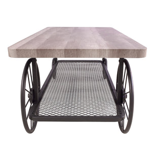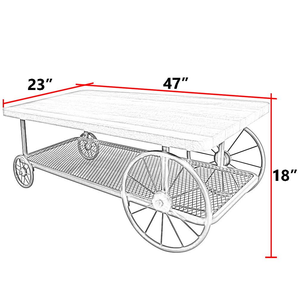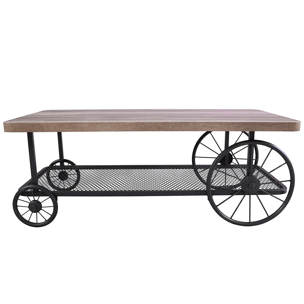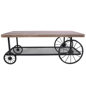 - Industrial-style metal wheels, with an antique sand gray and bronze hand-painted finish, add both functionality and an authentic, worn-in aesthetic.