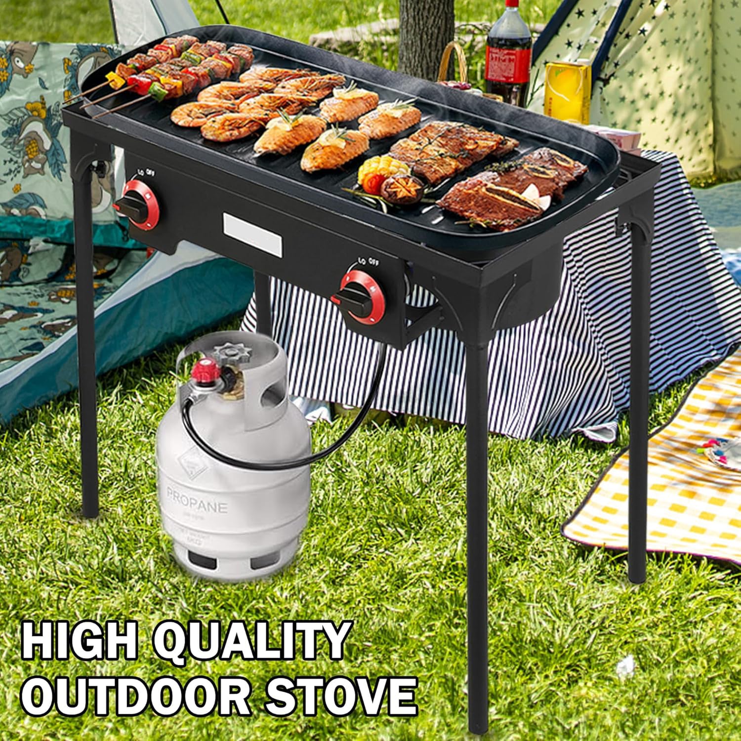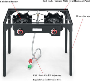 - GREAT OUTDOOR GAS STOVE - Perfect for outdoor cooking, camping and parties, With 2 powerful Cast Iron burners to work with, this burner stove makes camp cooking easily and works well for outside