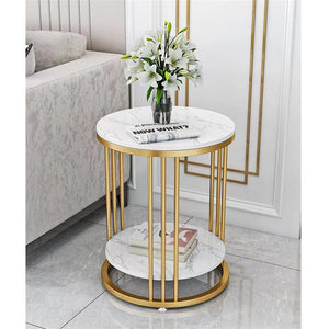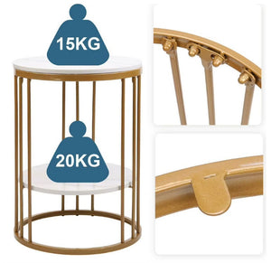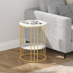 Marble Coffee Table Side End Table Bedside Table 2-tier Shelf Heavy Duty Base
