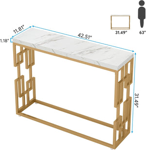 Modern Console Table for Entryway, 42.5-Inch Behind Sofa Table with Faux Marble Tabletop, Engineered Wood Entry Furniture for Hallway, Foyer, Living Room, Easy Assembly, White and Gold