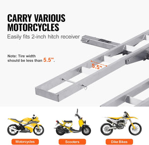 - Wide Applications: Our motorcycle carrier hitch mount easily adapts to vehicles with a 2-inch receiver, catering to a wide range of motorcycle types. Whether you have heavyweight motorcycles, scooters, dirty bikes, or anything in between, this hitch carrier is your reliable partner for hassle-free transportation.