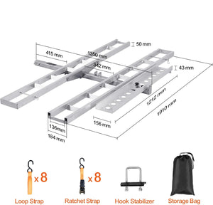 - Self-storing Ramp: The motorcycle carrier hitch mount with a 3.9ft / 1.18m self-storing ramp ensures easy motorcycle loading, no need for heavy lifting. Plus, you can conveniently attaches the ramp to the dirt bike carrier when not in use for added practicality and safe drive.