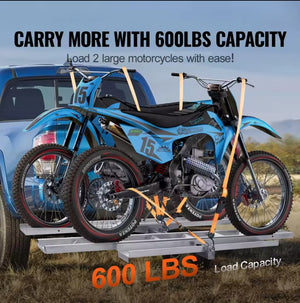 - 600LBS Weight Capacity: Our aluminum motorcycle hitch carrier with 600 weight capacity, can easily carry 2 motorcycles, ensuring stable support for motorcycles of all sizes, from lightweights to heavyweights, during transport.