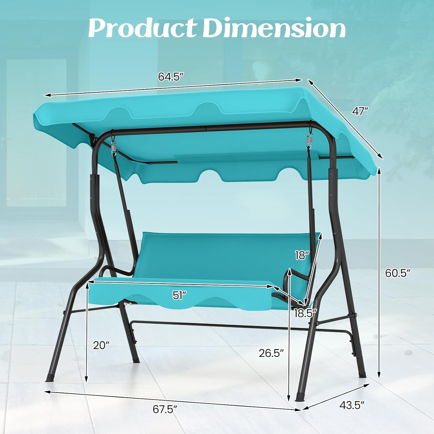 - Stable & Durable Construction: This patio swing is made of solid steel frame, which ensures strong weight capacity and sturdy construction. And the powder-coated finish and polyester fabric provide better durability to support long-lasting use and enjoyment for you and your family.