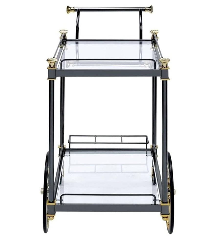 Cyrus Rectangular Glass Top Serving Cart with 2 Shelves in Black and Clear