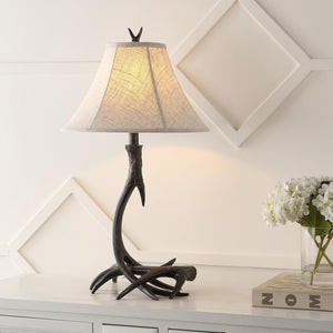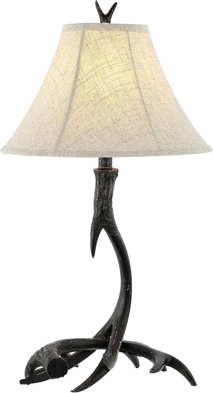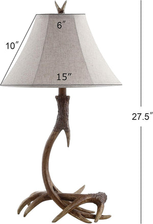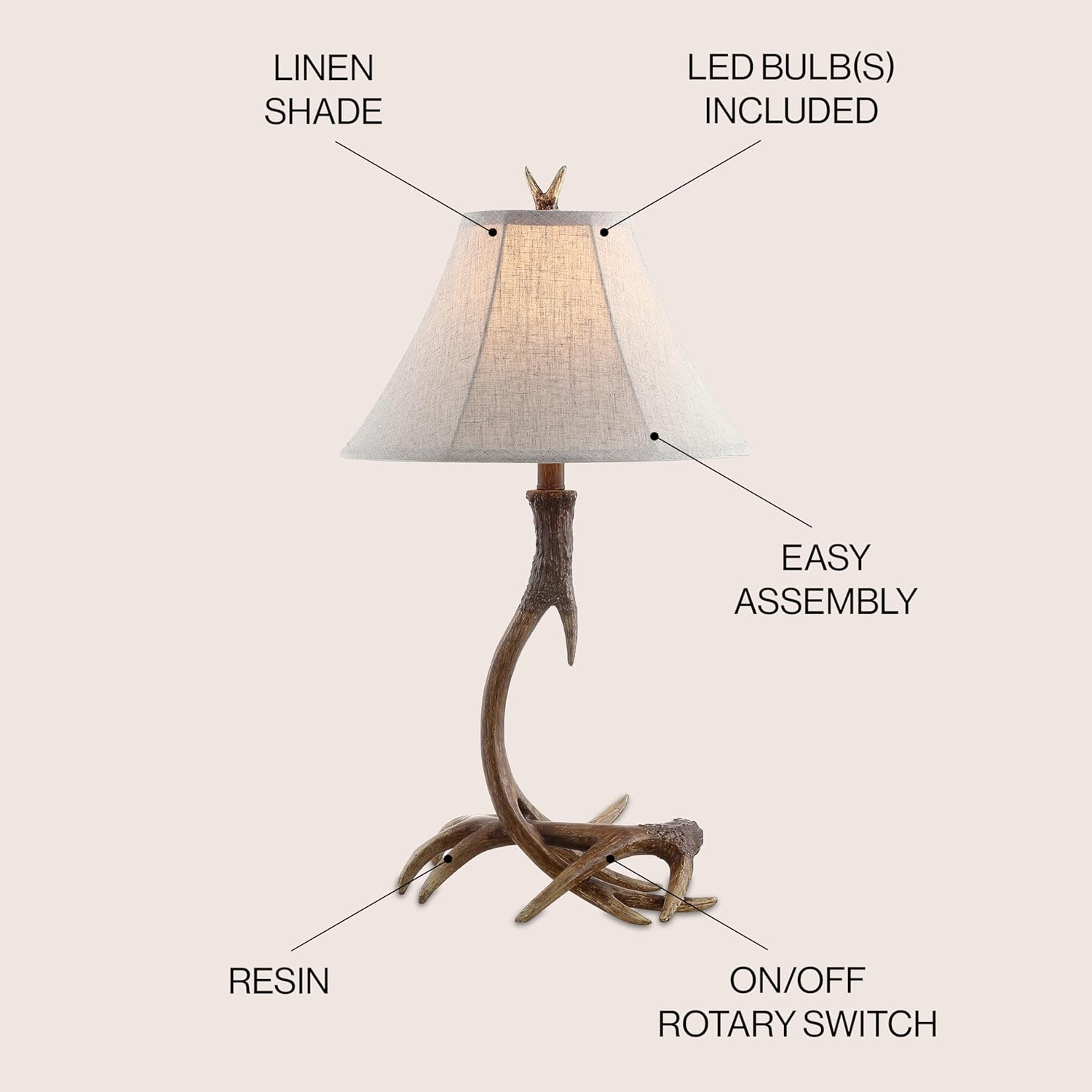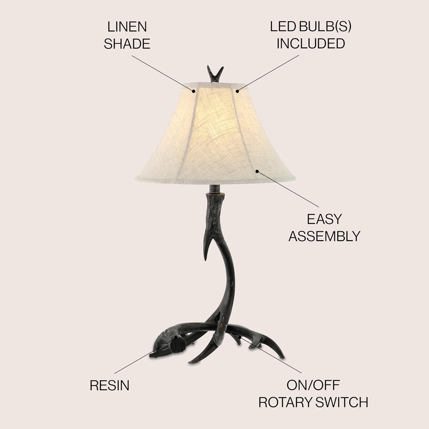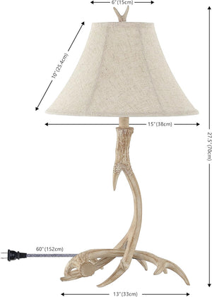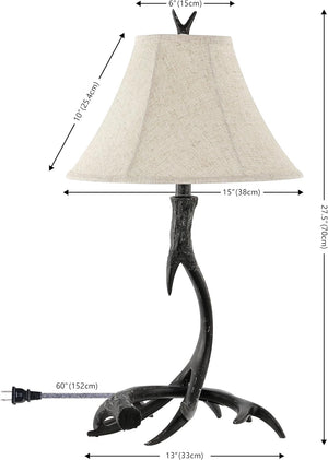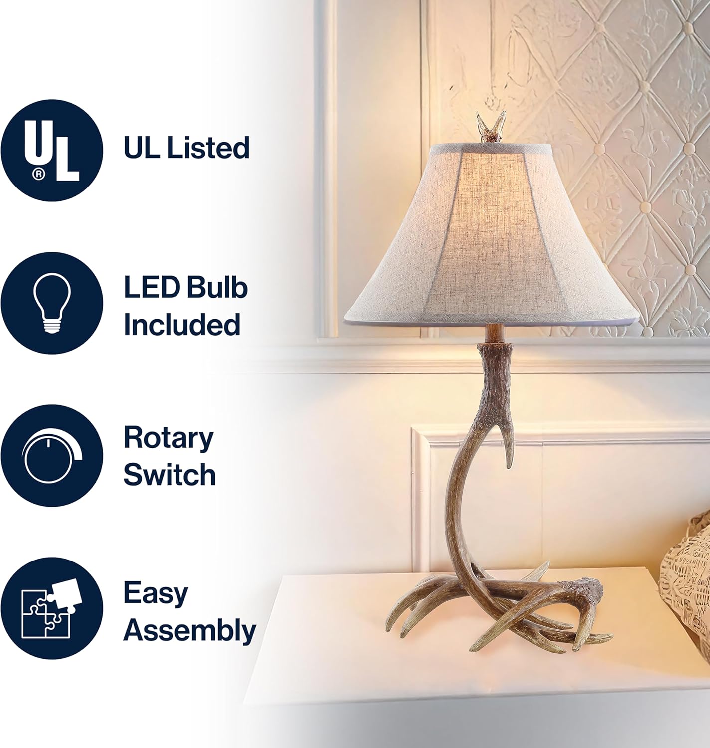 Rustic Antler Table Lamp 27.5", Farmhouse Lodge Cabin Decor for Living Room Bedroom, Resin Bedside Nightstand End Table Lamp with Linen Shade