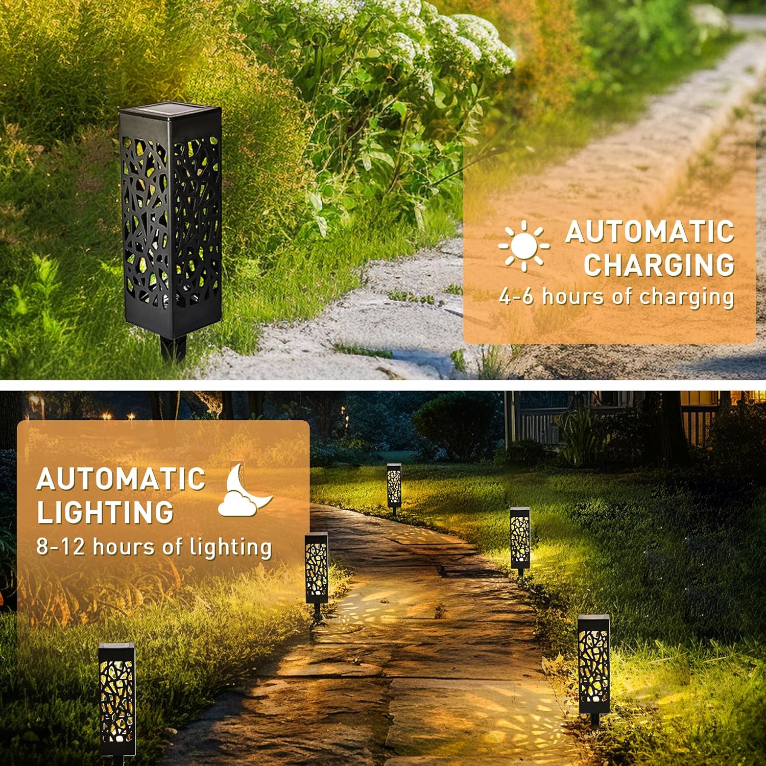 - Reliable & Effortless: Charge our solar garden lights 6-8 hrs in sun, enjoy 8-12 hrs glow. Auto-on/off, eco-friendly. Ideal for garden decor, porch decor, outdoor decorations
