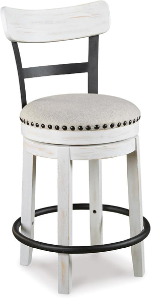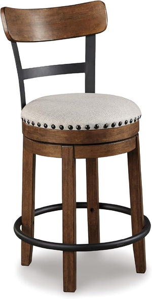 Valebeck Rustic Farmhouse Swivel Bar Stool – 24.5″ Counter Height, 360° Swivel Metal & Wood Frame, Polyester Upholstery