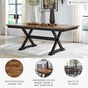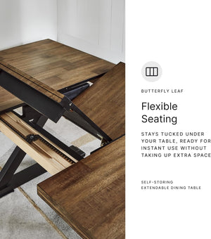 - DINING EXTENSION TABLE: Raise the bar on modern farmhouse style with this dining table. It serves up charm from breakfast to dinner, expanding with a self-storing butterfly leaf to provide room for 8