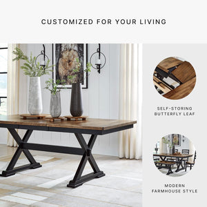 Wildenauer Farmhouse Dining Extension Table with Self-Storing Butterfly Leaf for 6-8 People, Black & Dark Brown