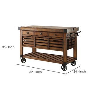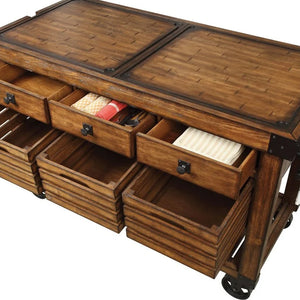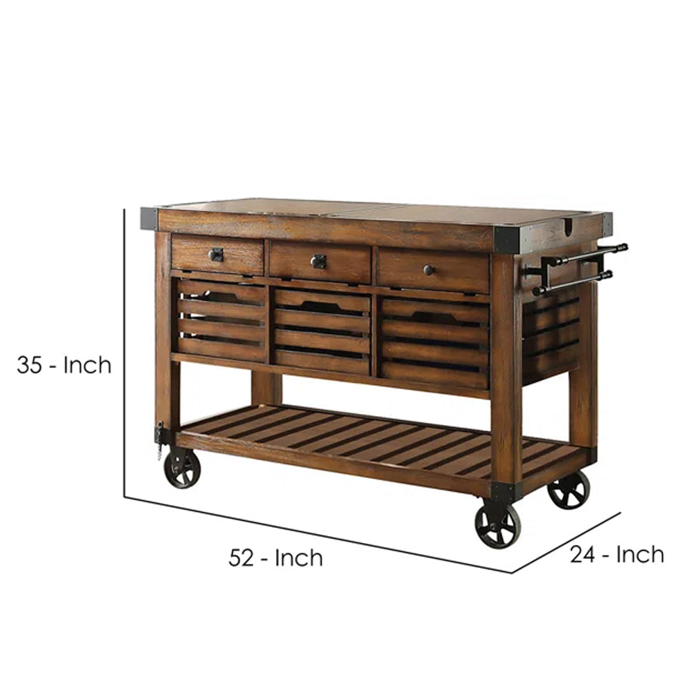 Kaif 3-Drawer Wooden Kitchen Cart with 3 Baskets in Distress Chestnut