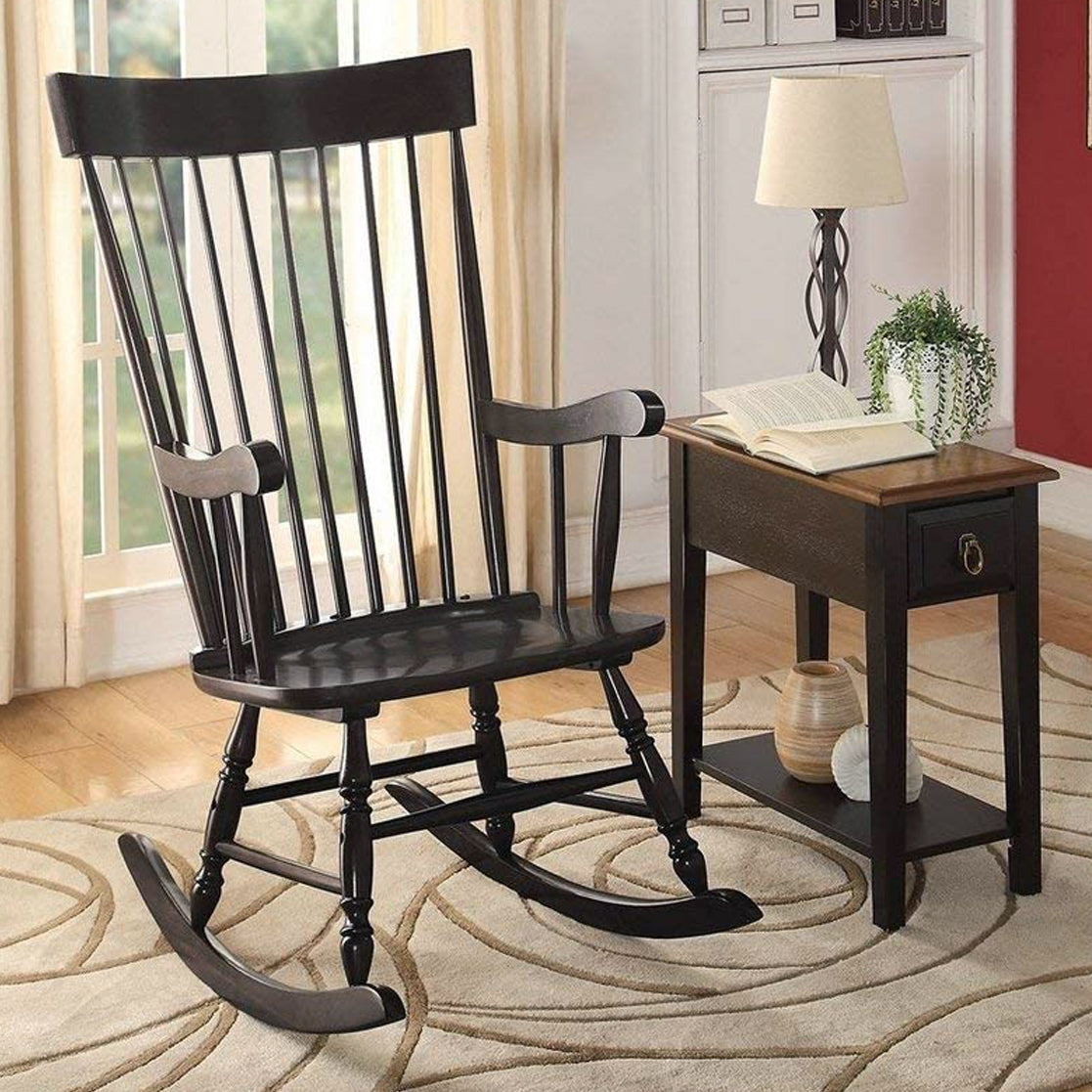 - Black finish gives the rocking chair a timeless and sophisticated look.