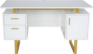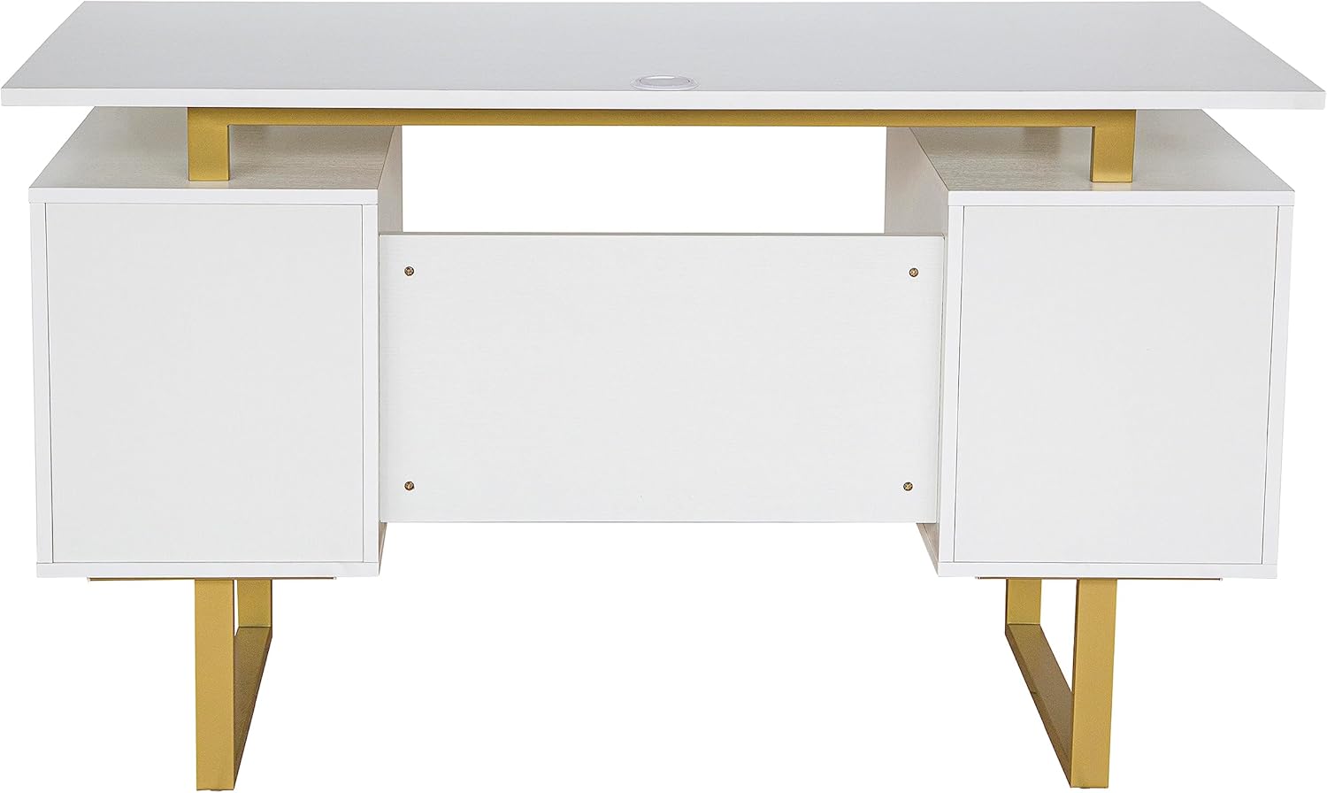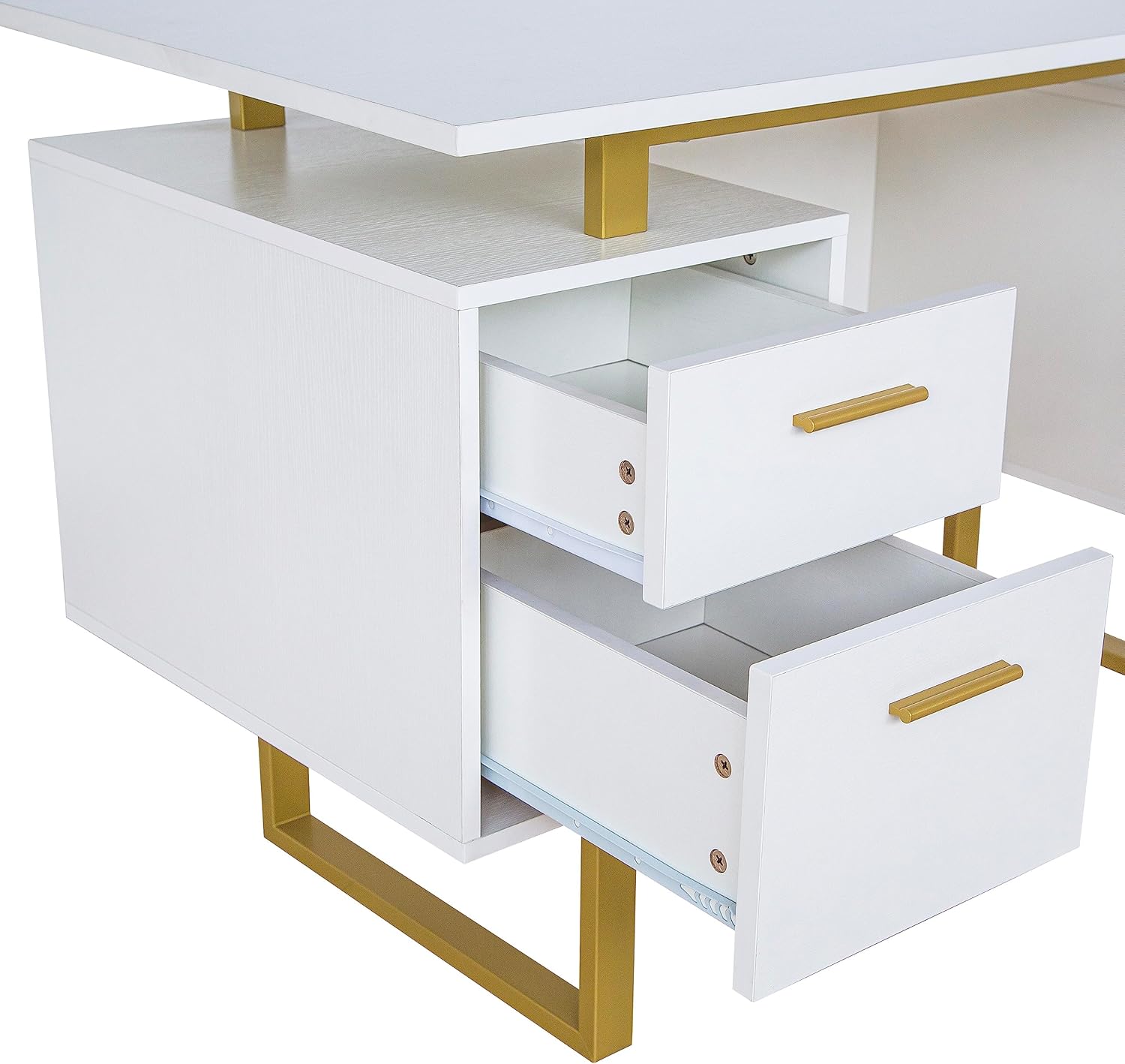 Writing Desk Table Storage Drawers and Cabinet Modern Office Large Floating Desktop Surface White/Gold